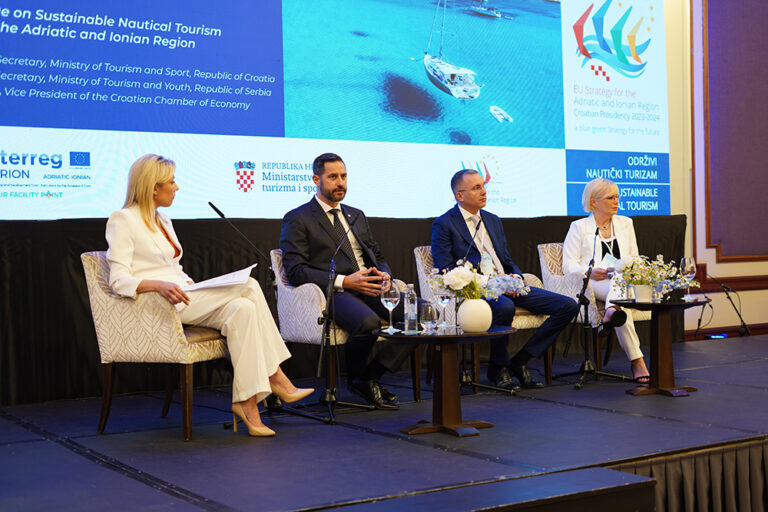 The EUSAIR conference on sustainable nautical tourism in the Adriatic-Ionian region was held on June 21, 2023 in Zagreb, and was attended by Tonči Glavina, State Secretary in the Ministry of Tourism and Sport of the Republic of Croatia, Uroš Kandić, State Secretary in the Ministry of Tourism and Youth of the Republic of Serbia, Mirjana Čagalj, vice-president of the Croatian Chamber of Commerce and Zrinka Marušić from the Institute for Tourism, while the panel within the conference “Best practices in sustainable nautical tourism and benefits for the Adriatic-Ionian region” brought together the most relevant speakers from the nautical sector, among whom were Kristijan Pavić, President of the Management Board of ACI d.d., Teuta Duletić, General Director of Lürssen Design Center Kvarner, Nella Slavica, Director of the Krka National Park Public Institution, Ante Mandić, Professor at the Faculty of Economics, Business and Tourism at the University of Split and Siniša Orlić, Director of the Maritime Safety directorate in the Ministry of the Sea, Transport and Infrastructure.